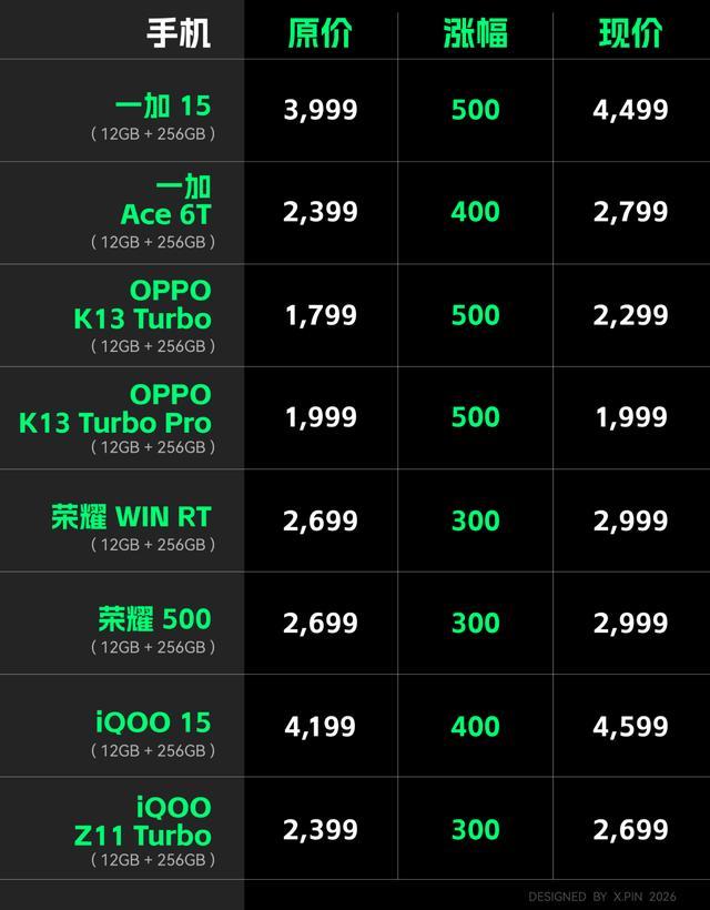 前有三星 S26 直接涨一千块,后有新闻说,多家手机厂商计划 3 月集体涨价,最少涨 1000。